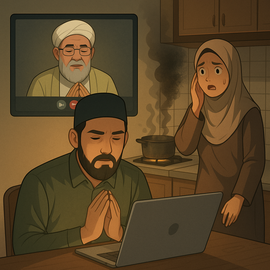 Malam itu, saya sedang mengikuti pengajian online bersama Guru Mursyid kami tercinta, Pangersa Abah Bandi QS.Sementara saya berada di rumah beliau, istri saya mengikuti dari rumah kami melalui Zoom. Biasanya kami sangat teliti—apalagi soal dapur.Tapi mungkin karena keasyikan mengikuti kajian, istri saya lupa bahwa kompor sedang menyala saat memasak. Bau Aneh dan Bekas Gosong Tiba-tiba,